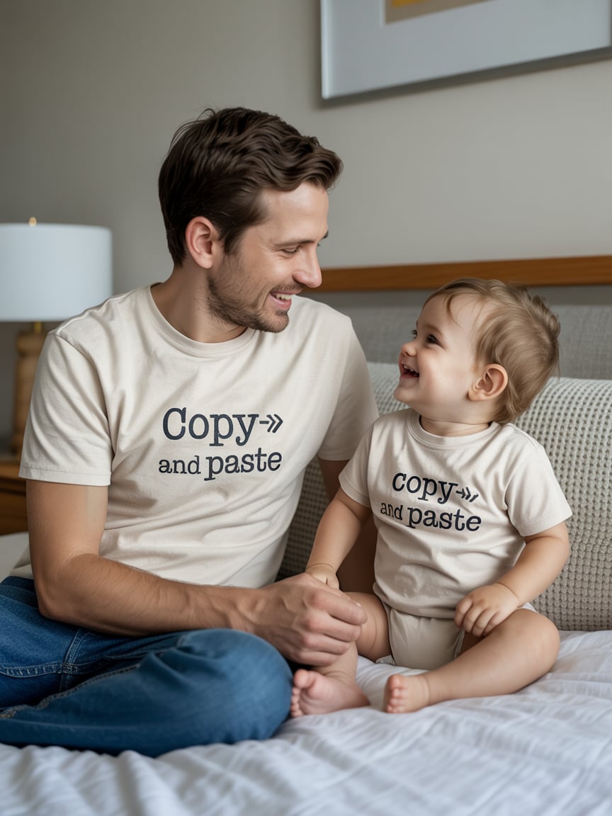 Print your message on cardstock and tape it to a matching outfit set — Dad + baby matching shirts are an instant hit for photos. Write something cheeky like “Best Dada Duo” or “Copy + Paste.” Bonus points if you snap a photo for next year’s Father’s Day card.