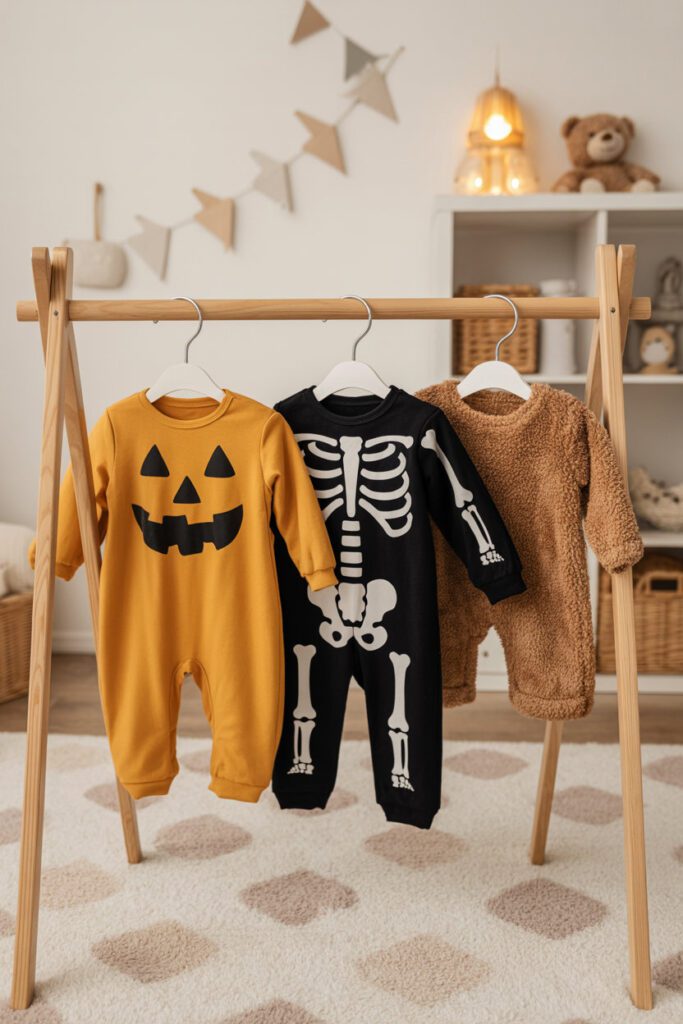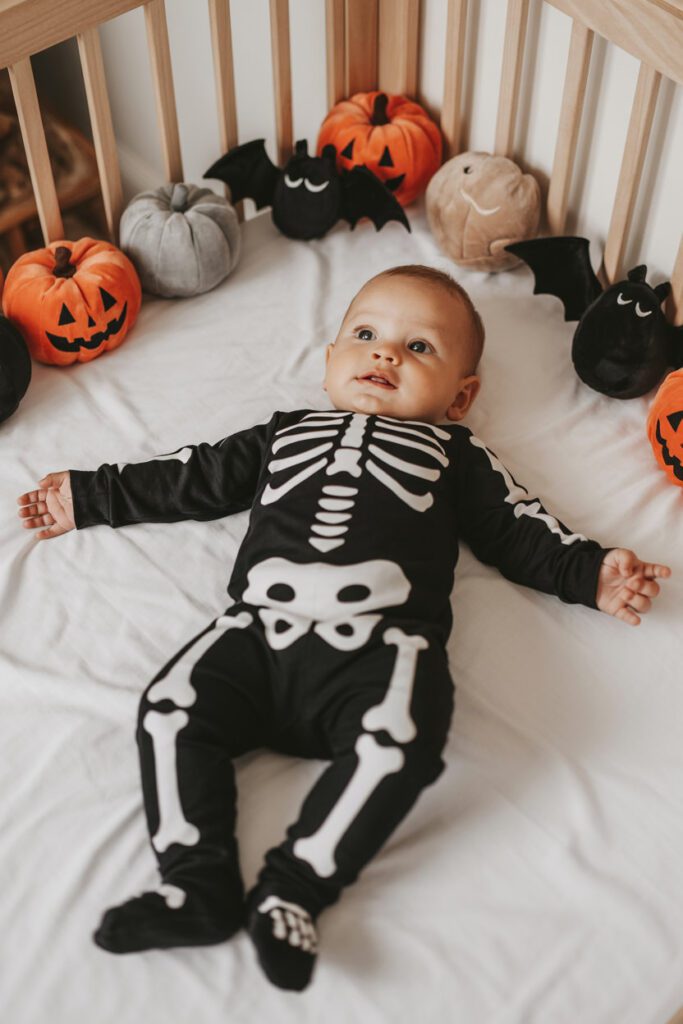 Want genius? Get the baby skeleton pajamas. They glow in the dark (huge hit with siblings), they’re soft enough to sleep in, and they pull double duty as everyday sleepwear after Halloween. Practical, fun, and spooky without scaring Grandma. Grab glow-in-the-dark skeleton PJs.