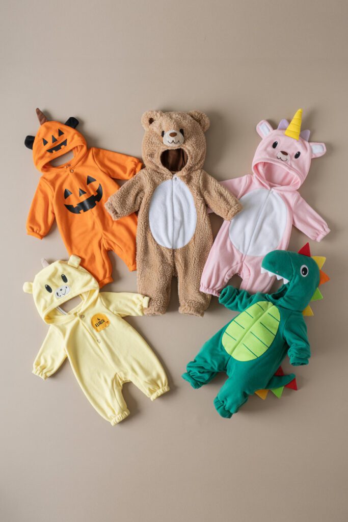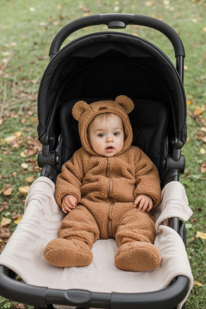- Think warmth: For October evenings, fleece animal suits or plush onesies are gold. If you’re in a warm climate, lightweight bodysuits keep baby comfy without overheating.