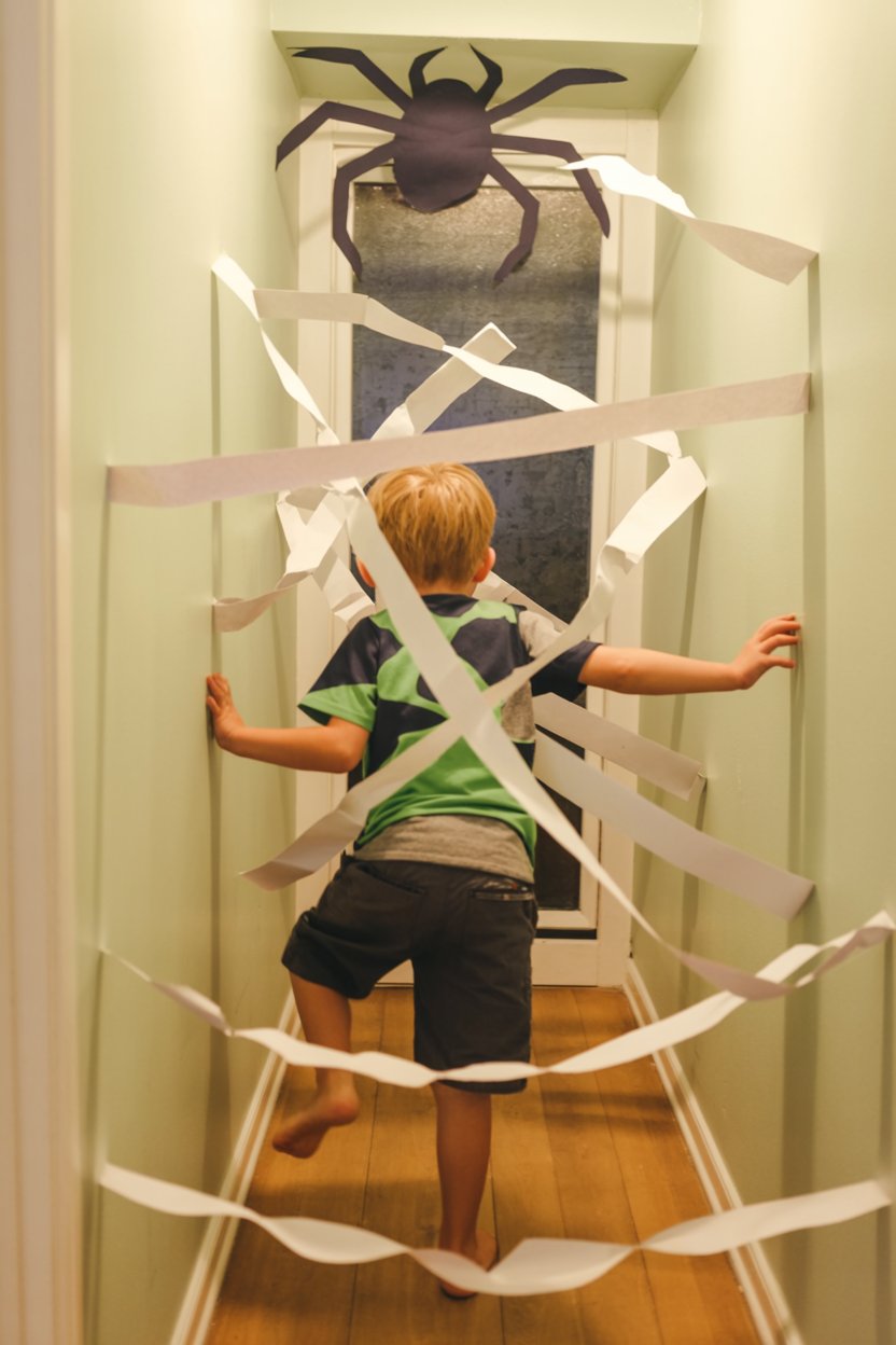Burn off candy energy with a DIY obstacle course. Criss-cross a hallway with spider web string, add plastic spiders, and challenge kids to crawl through without touching. Time them with a kids stopwatch set for a fun competitive twist.