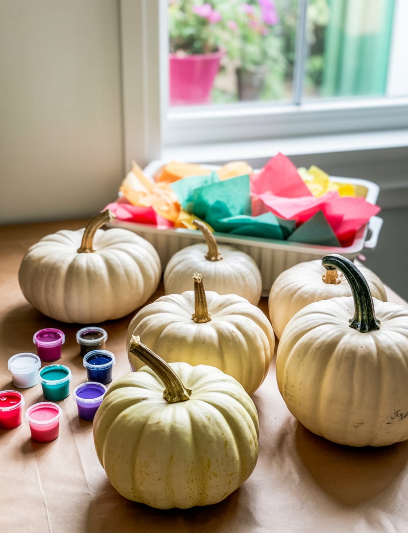 Carving is messy—decorating is fun and stress-free. Hand out mini pumpkins, stock a pumpkin decorating craft kit, and add washable paint markers for safe fun. Kids love showing off their finished pumpkins, and they double as take-home party favors.