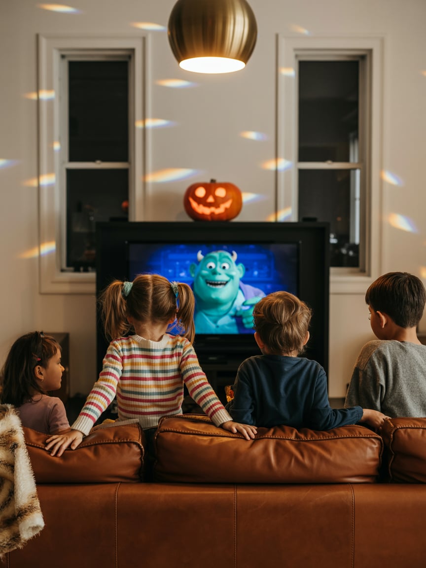 Create a cozy chill zone with floor pillows, blankets, and a dark sheet as backdrop. Play not-too-scary picks like Room on the Broom, Casper, or the Hotel Transylvania collection. Add popcorn and juice boxes so parents get a breather while kids recharge. Skip anything too scary—no nightmare fuel here.