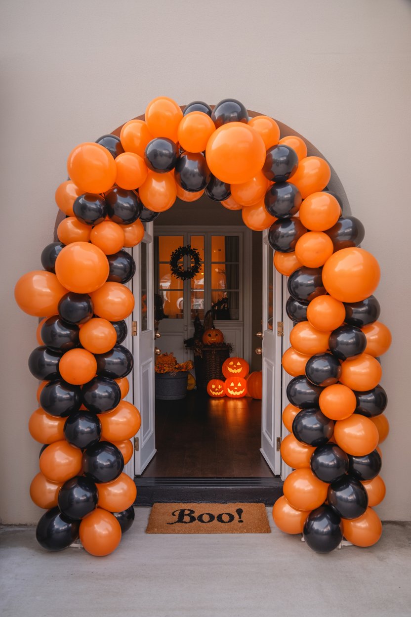 Make your entrance the star with a bold balloon arch — it’s festive, fast, and makes the whole house look styled. Use a kit like the Lutoys 126-Pc Garland Kit or the luxe Baolaiballoon Arch Kit, then frame your doorway and layer in 2–3 oversized balloons for drama. Command hooks keep it damage-free. Pro move: mix balloon sizes so it looks lush—skip “tiny only” arches, they fall flat.
