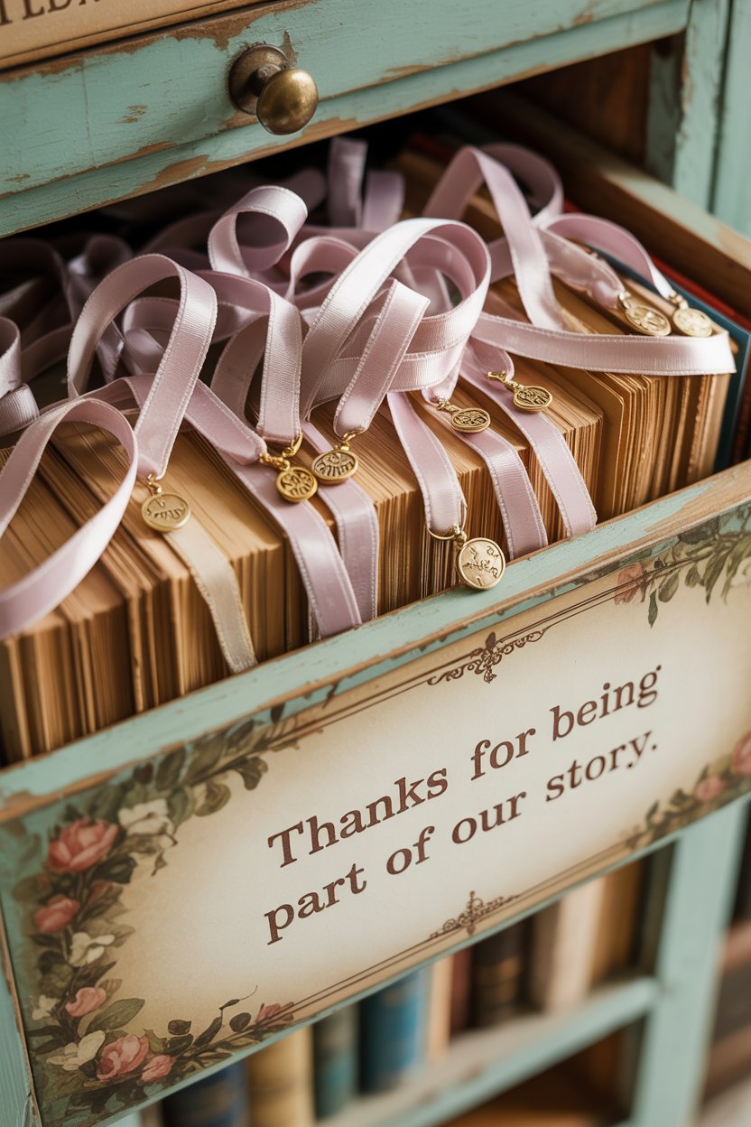 💡 Pro Tip: Display all favors in a vintage drawer lined with book pages or stacked on a mini “library cart” near the exit. Guests grab one as they leave—smooth and classy.