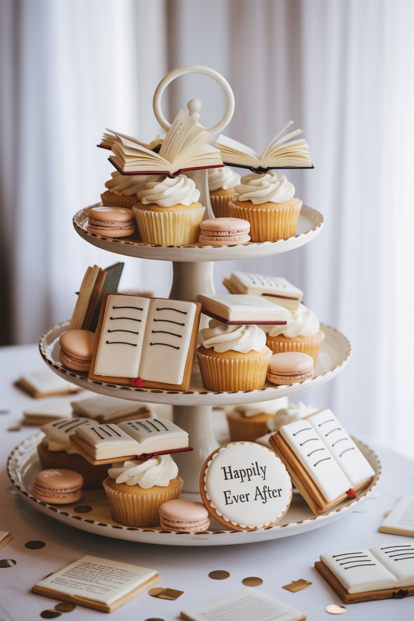 - Cupcakes topped with mini “book” toppers (so cute it hurts).