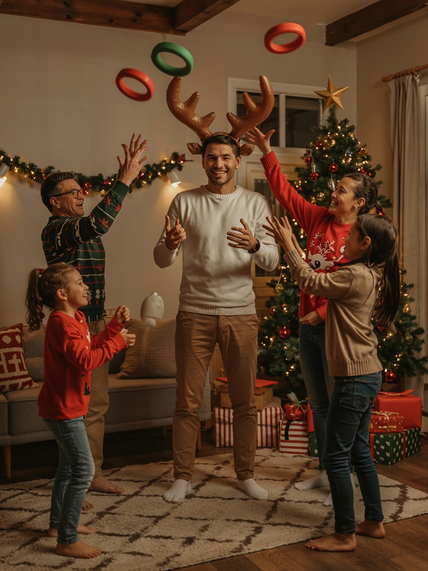 Want to crank it up even more? Hand out a prize for “Best Reindeer Performance” — because if someone’s going to stand there with inflatable antlers while getting pelted with rings, they deserve something, okay?