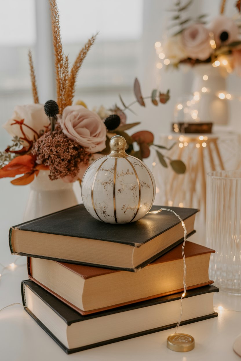Mix real pumpkins, thrifted vases, and dollar-store finds. Add fairy lights and printable banners—cheap, chic, and unforgettable.