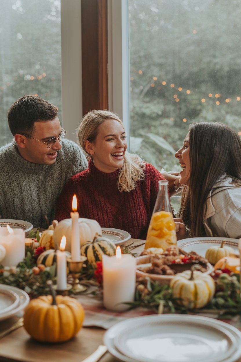 Décor: Scatter mini pumpkins, layer leaf garlands, and run a soft gauze runner down the table. Add amber bud vases with dried wheat for a simple, stunning centerpiece.