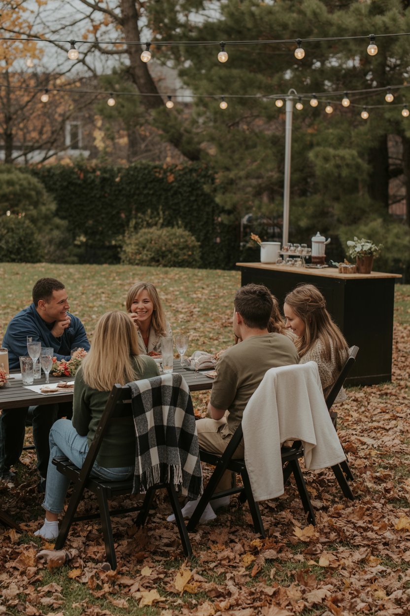 Keep it casual with hearty comfort foods, football-themed décor, and backyard bonfires. Men and women alike love relaxed, cozy vibes.