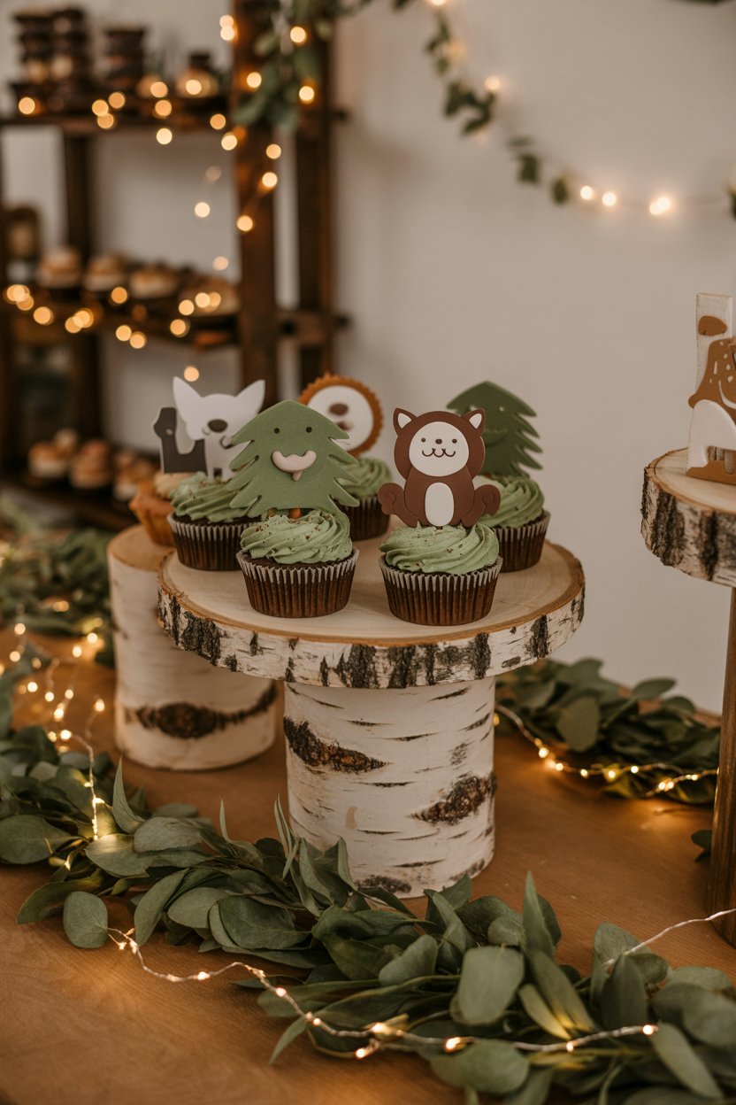 Sweet details: Little touches like forest-animal cupcake toppers and birch-patterned straws make the theme come alive. See more ideas here: Woodland Baby Shower.