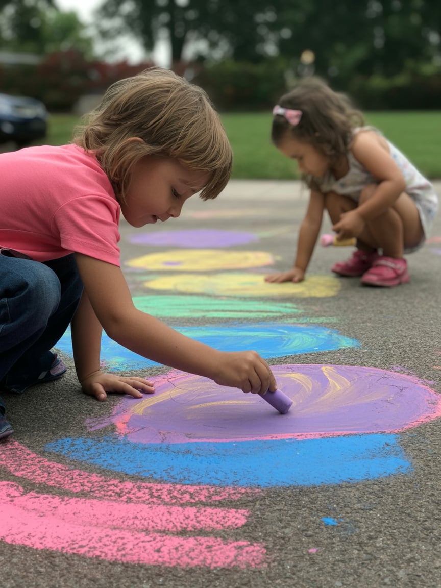 Give each child a square of sidewalk or patio to decorate. Add a banner that says “Chalk Gallery” for a cute photo op!