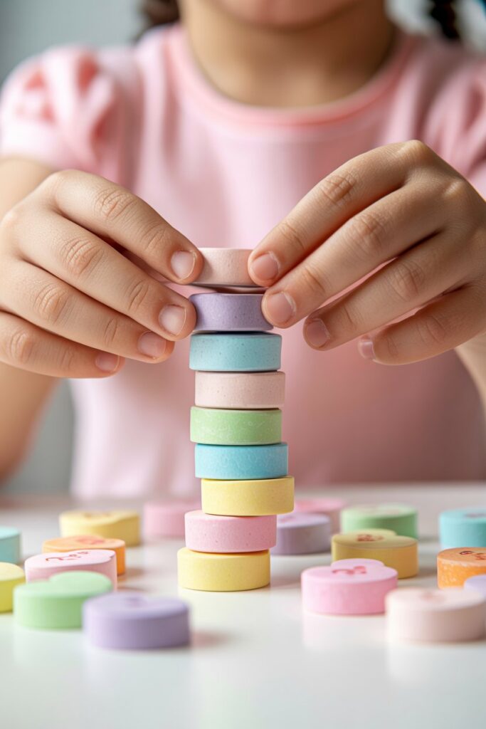 Give each child a handful of conversation hearts and see who can stack the tallest tower before it falls. It’s calm, competitive in a gentle way, and a perfect tabletop activity. Leftover candy? Put it to good use in Valentine snacks or treat boards.