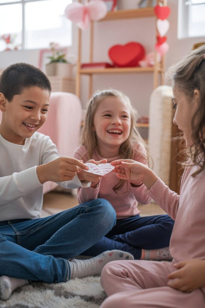 A safe-touch version of tag where “Cupid” lightly taps players using a soft heart sticker or fabric tag. Once tagged, kids perform a cute task—like blowing a kiss or making a heart shape with their hands—before rejoining the game. High-energy without the chaos.